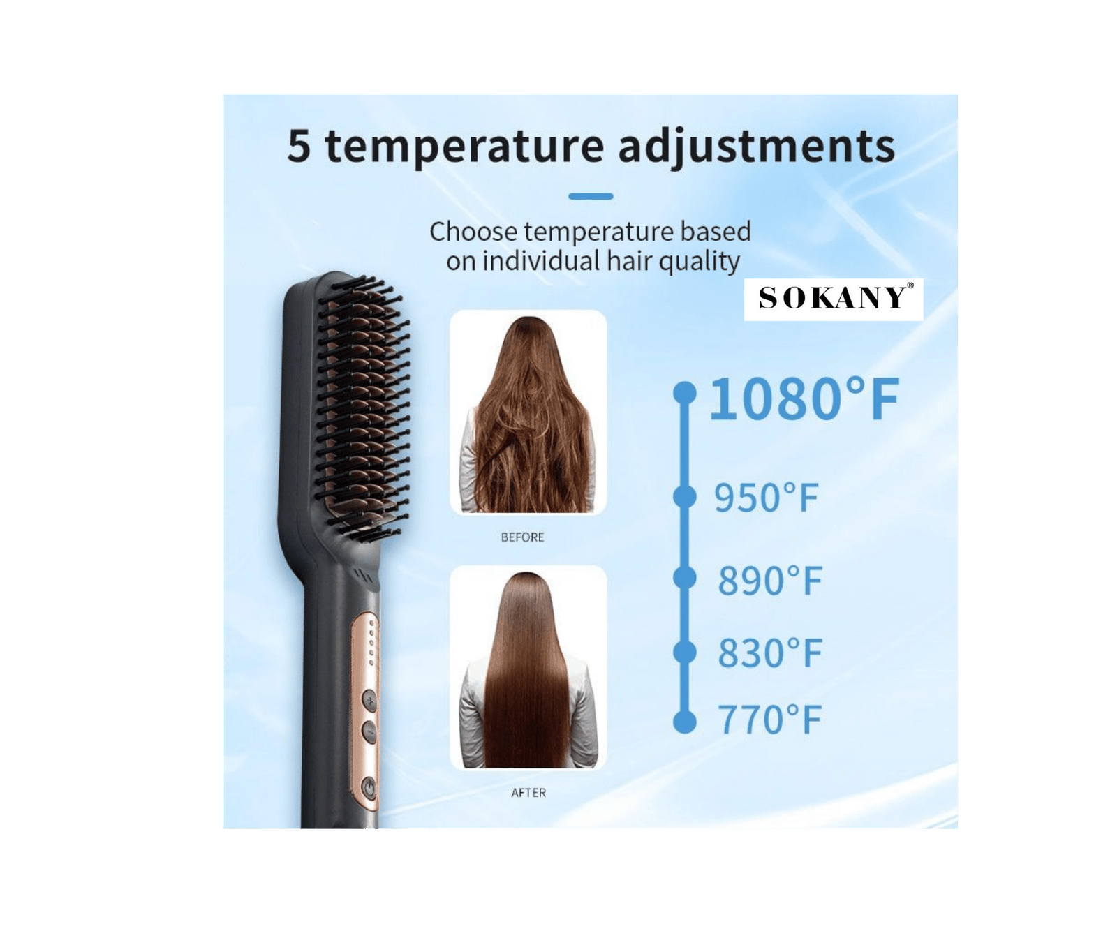 - مكواة فرد الشعر سوكاني SK-15008 هي أداة عالية الأداء مصممة لتصفيف الشعر الجاف. مع درجة حرارة قصوى تصل إلى 1080 درجة فهرنهايت و5 دورات حرارة متغيرة، يوفر لكِ نتائج احترافية دون الإضرار بشعركِ. تضمن لكِ تقنية التسخين السريع أن تكوني جاهزة للتصفيف في دقيقتين فقط، مدعومة بحماية من الحرارة الزائدة لتوفير أقصى درجات الأمان.