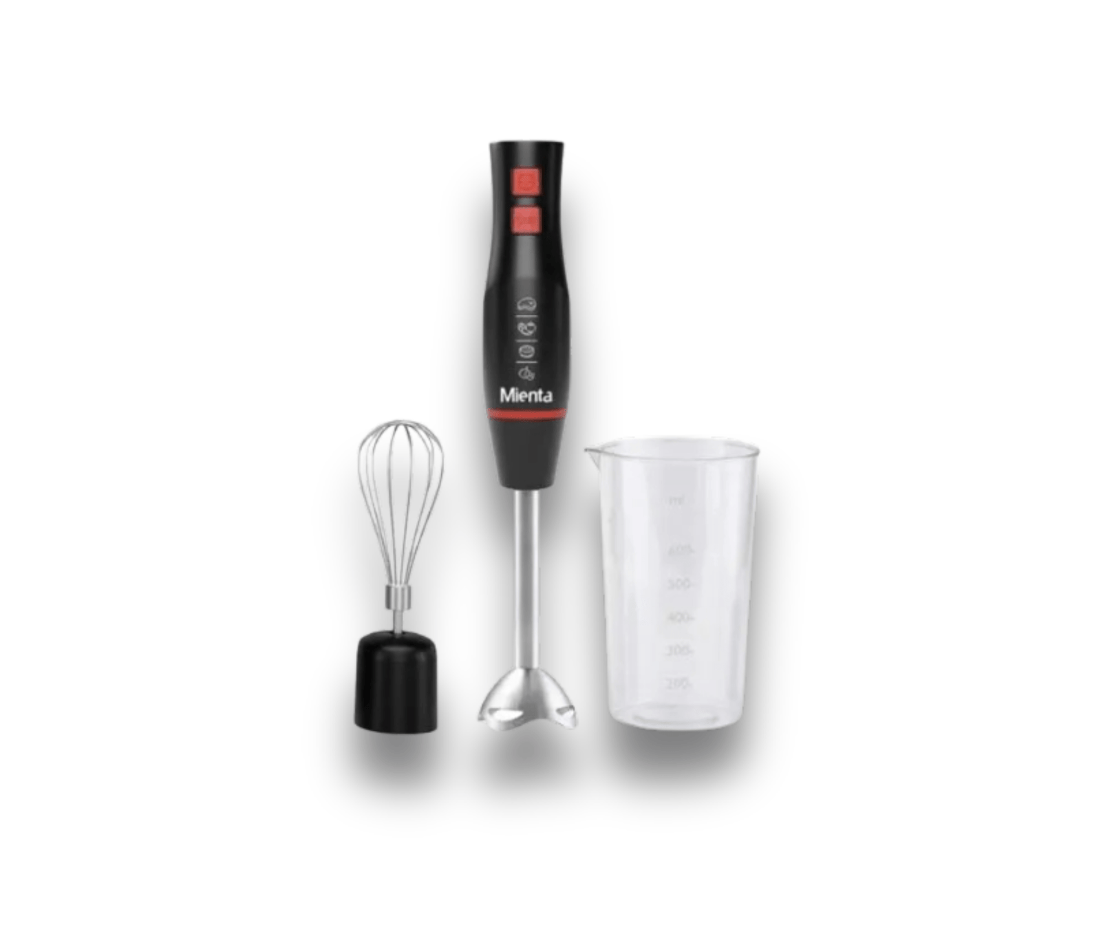 • صُمم الخلاط اليدوي HB111938A من Mienta للتعامل مع مهام المطبخ اليومية بكل سهولة. بفضل قوته التي تبلغ 450 واط ووظيفة Turbo المخصصة، يضمن لك الخلط السلس دون فوضى بفضل عموده المقاوم للصدأ المضاد للتناثر. كما أنه مزود بمضرب ودورق متدرج، مما يجعله الأداة المدمجة المثالية لكل منزل.