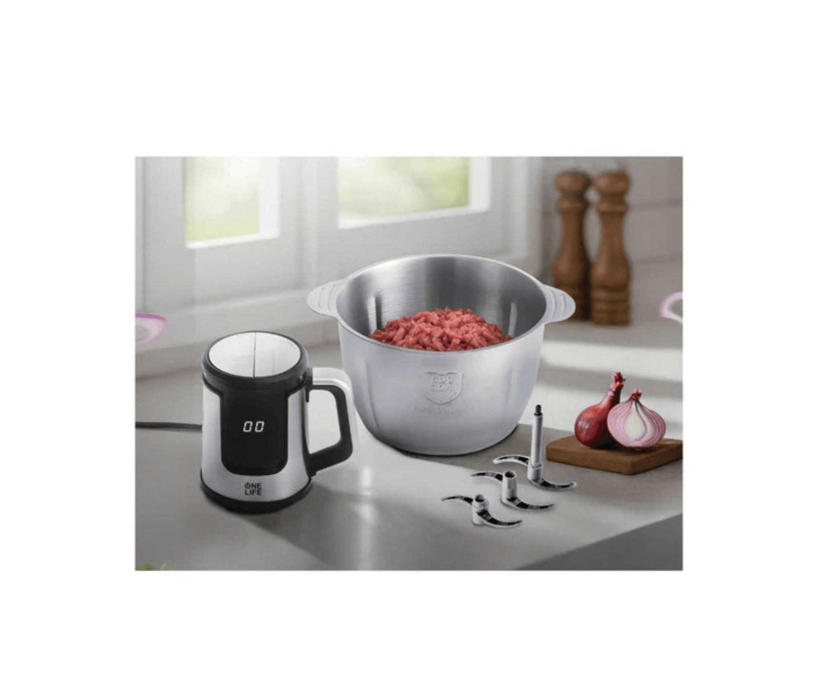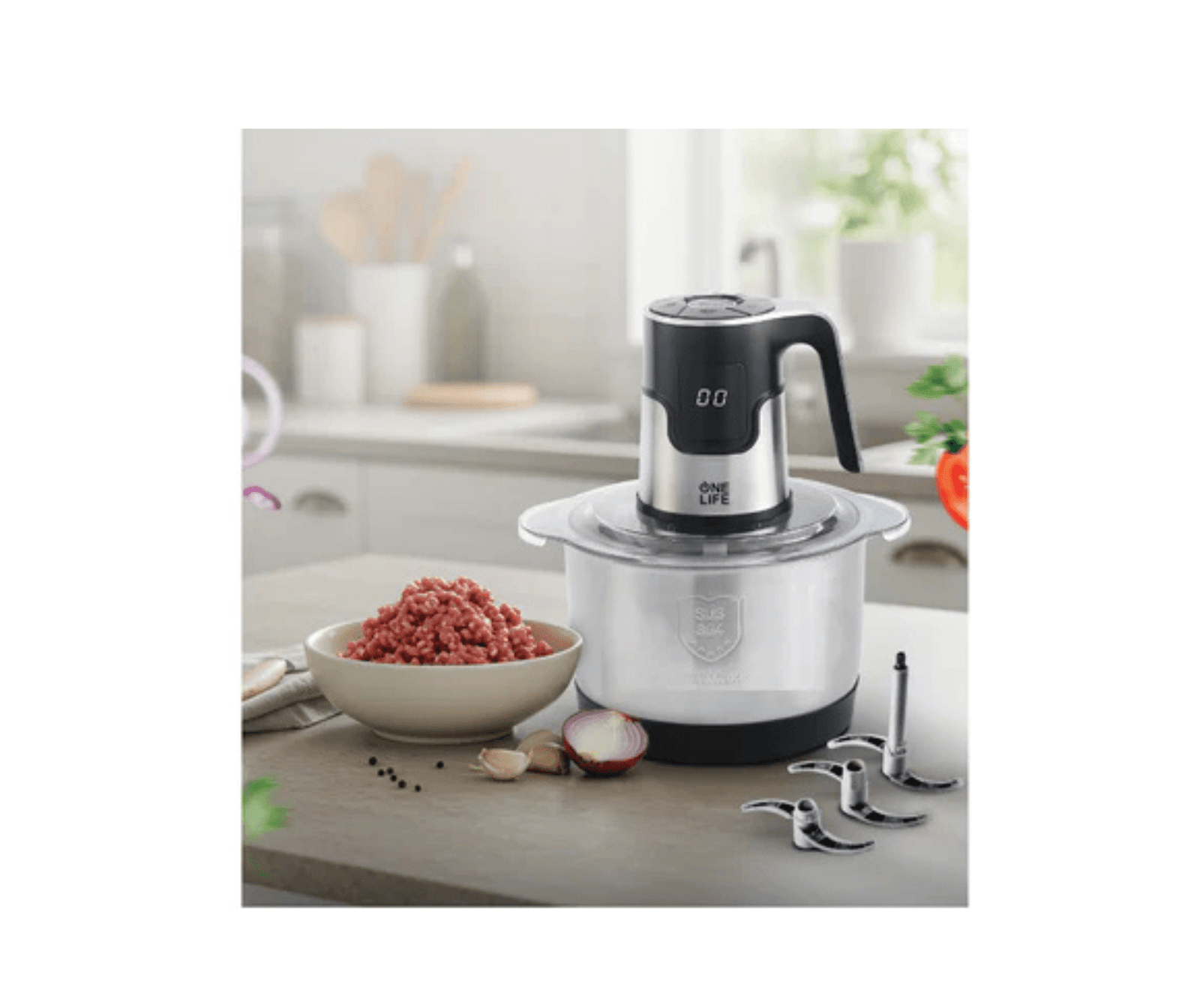 Digital Precision with Unstoppable Power! The One Life CH703DS Digital Chopper is your ultimate kitchen assistant, powered by a high-torque 700W motor. It features a durable Stainless Steel Bowl that ensures long-lasting hygiene and performance, coupled with 3 digital speeds for complete control over your ingredients. Equipped with a safety lock and a transparent lid for easy monitoring, it is the perfect tool for mincing meat, chopping vegetables, and grinding nuts professionally.