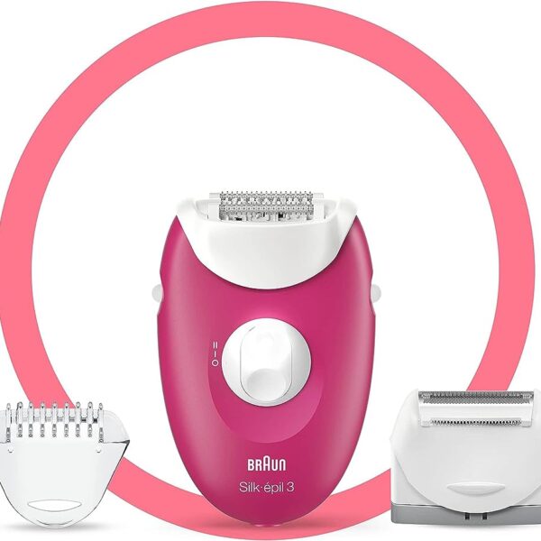 براون SE 3410 سيلك-إبيل 3 جهاز إزالة الشعر للنساء – وردي