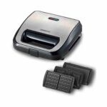 - يتضمن 3 مجموعات من اللوحات متعددة الوظائف القابلة للإزالة: صانع السندوتشات والشواية وصانع الوافل