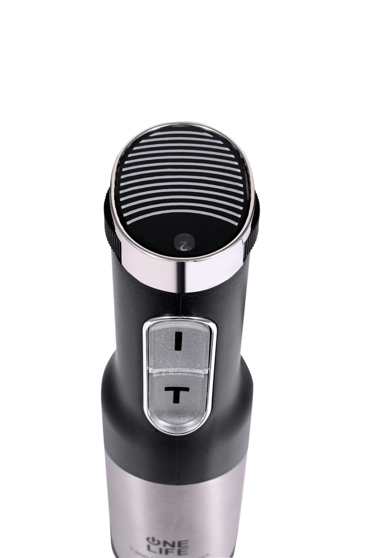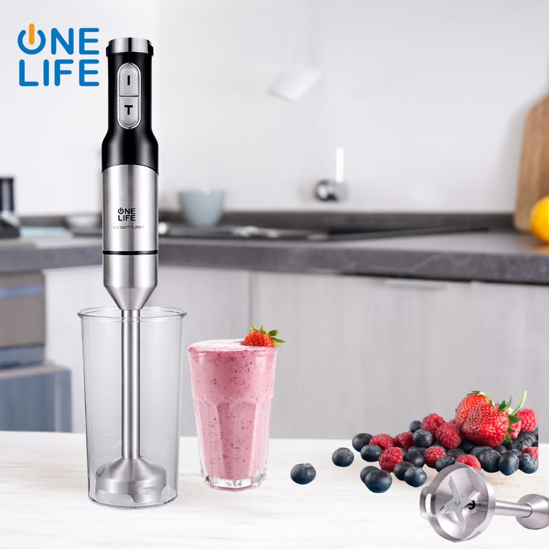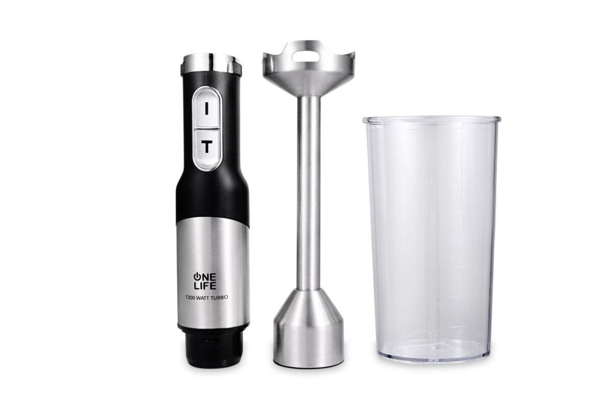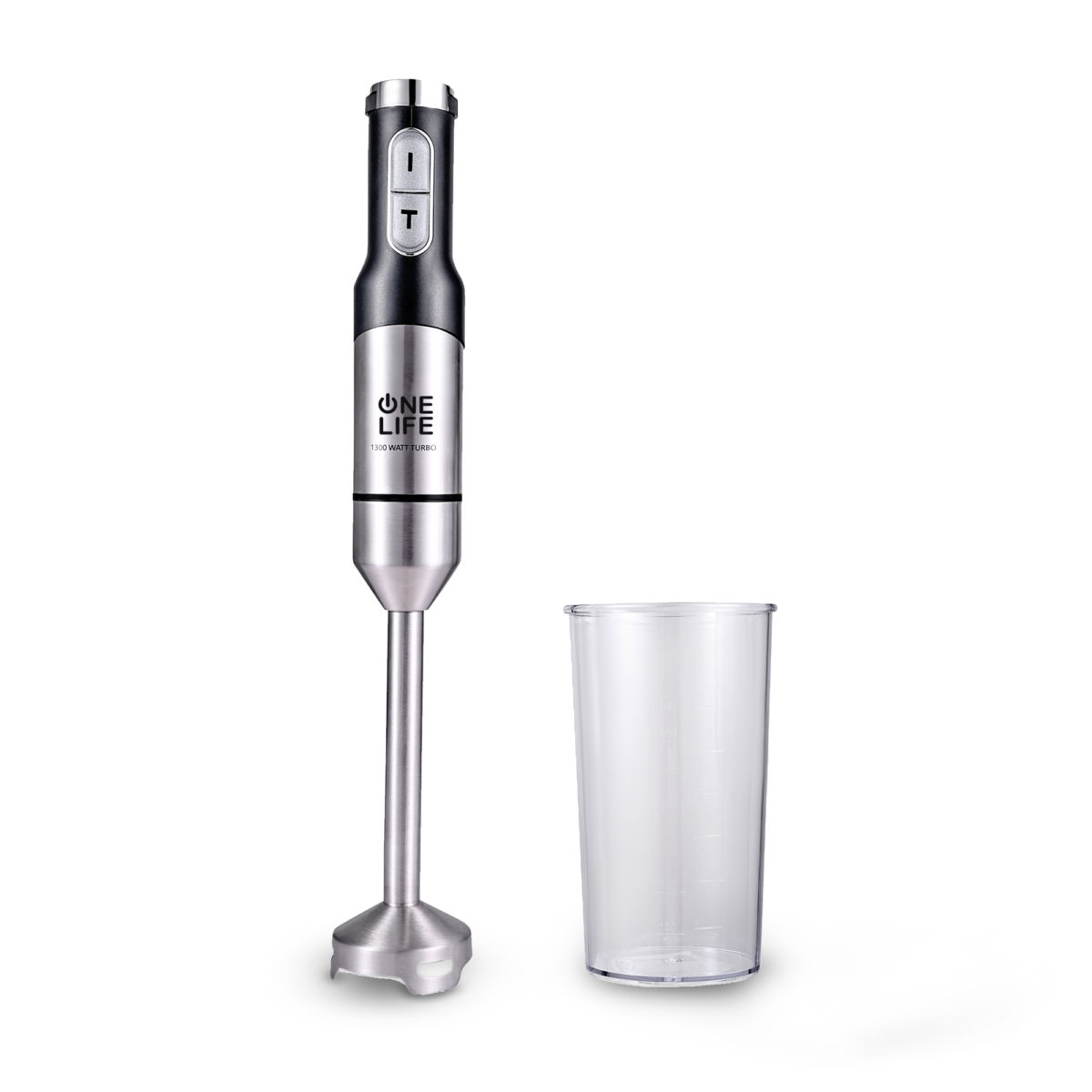 خلاط يدوي ون لايف HB1300B – 1300 واط، 5 سرعات، شفرات من الفولاذ المقاوم للصدأ، 4 شفرات، وعاء 600 مل.